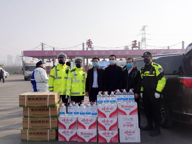 为香王收费站一线执勤交警送去防御物资日期:2020-02-13